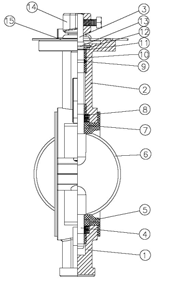 | 1 | Дисковый поворотный затвор с ручкой, межфланцевый. |