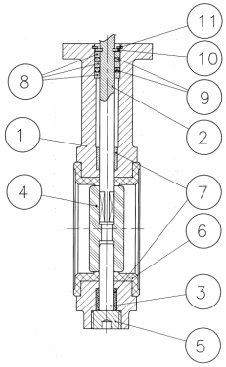 | 8 | Уплотнение штока | Карбонизированный тефлон / PTFE + Grafito | |